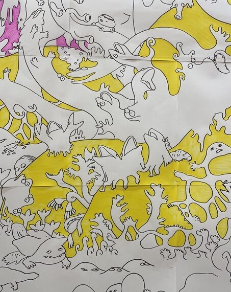こちらは、2011年に三野の郷交流館にて描きました。約縦2.5m×横6mの『古墳とおばけ』の絵。