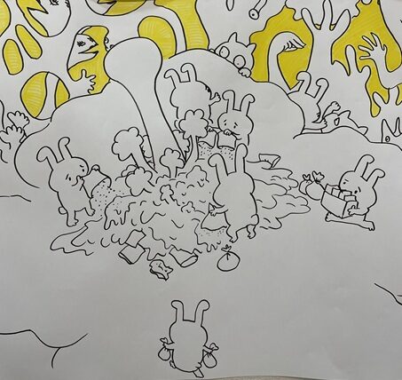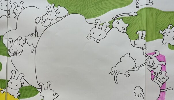 あと、作品の中には、うさぎと猫がどうすれば一緒に過ごせるかを考えている場面もあったり、うさぎと猫以外にもたくさんの生き物がいます。